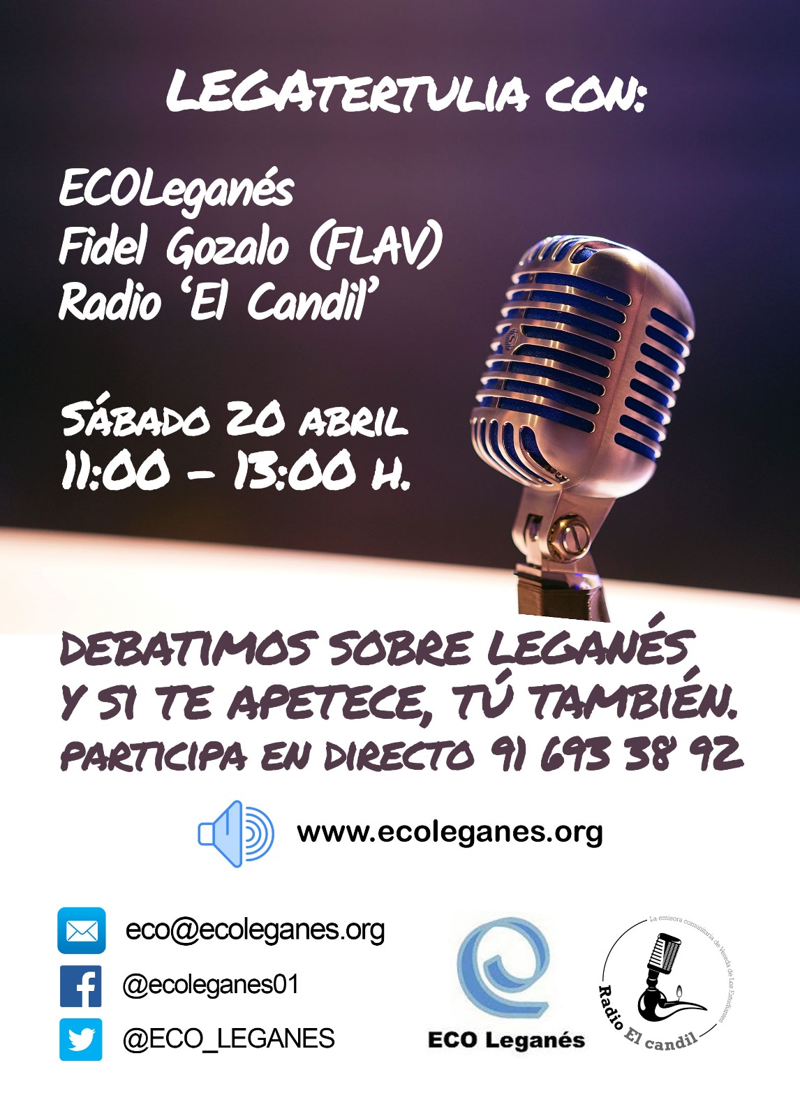 Tertulia sobre Leganés alrededor de la mesa de la Emisora Comunitaria de Leganés con amigos de Radio El Candil y la Asociación Vecinal Miguel Hernández de Vereda de los Estudiantes, ECO Leganés y (…)