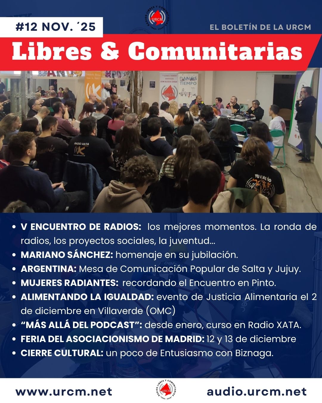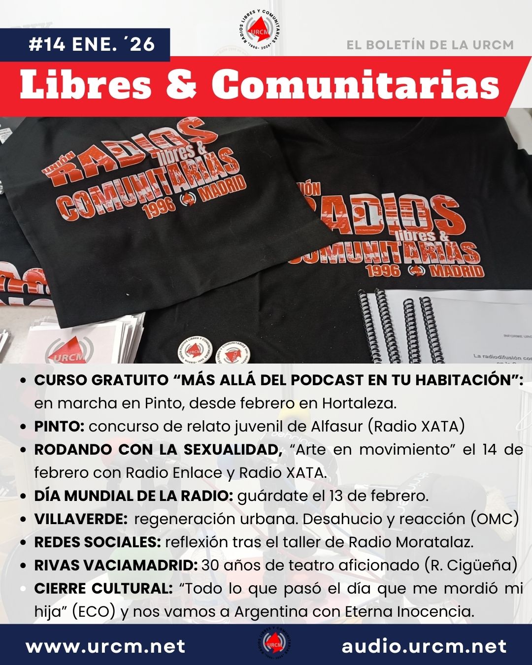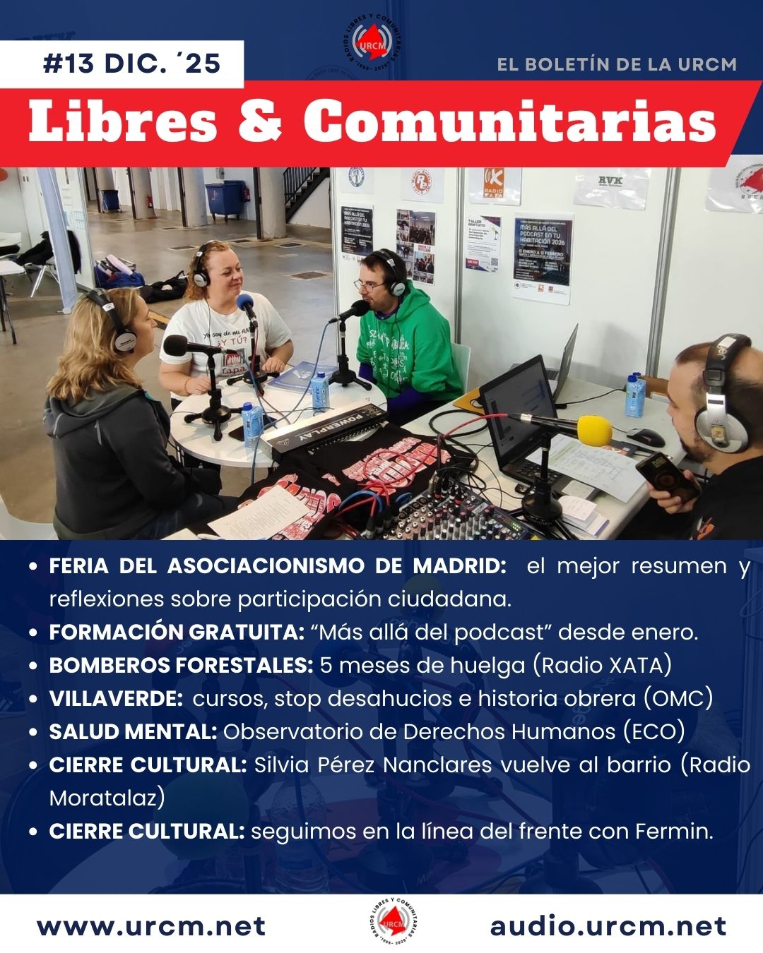 LIBRES & COMUNITARIAS es el nuevo boletín sonoro de la URCM: Unión de Radios Libres y Comunitarias de Madrid.