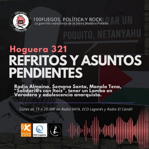 Recuperando cositas que se habían quedado pendientes (o no) en programas anteriores, hablamos de Radio Almaina y su victoria judicial, Semana Santa, Manolo Tena, los 30 años de la acción directa de “Solidari@s con Itoiz”, tener un Lambo en Varadero y otros deseos gusanos, historias de los grupos que sonaron y sueños de adolescentes anarquistas.