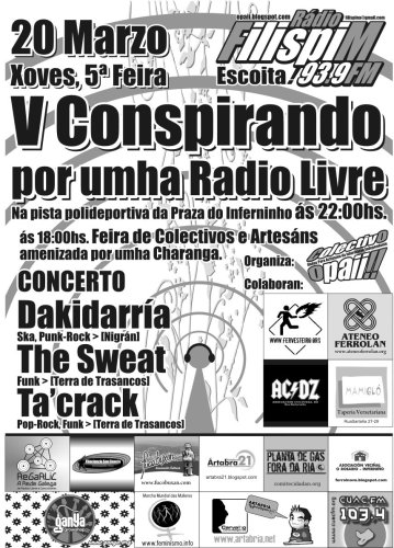 O Conspirando por unha rádio libre, celébrase todos os xoves santos(?) en Ferrol, co obxecto de autofinanciar , e celebrar, á Rádio FilispiM, libre e comunitaria da Terra de Trasancos (Ferrol), que transmite no 93,9 da FM dende o ano 2005, por obra e graza do Colectivo Opaíí!.