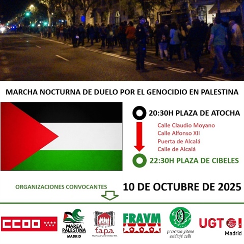 Destacamos la convocatoria de la marcha nocturna de duelo por el genocidio en Palestina y qué ha de tener en cuenta un AMPA en la rescisión de contratos. Comentamos además el quinto aniversario sin electricidad de los 4.000 habitantes de la Cañada Real, entre los que hay 1.800 niños maltratados por tres ayuntamientos y la Comunidad de Madrid.